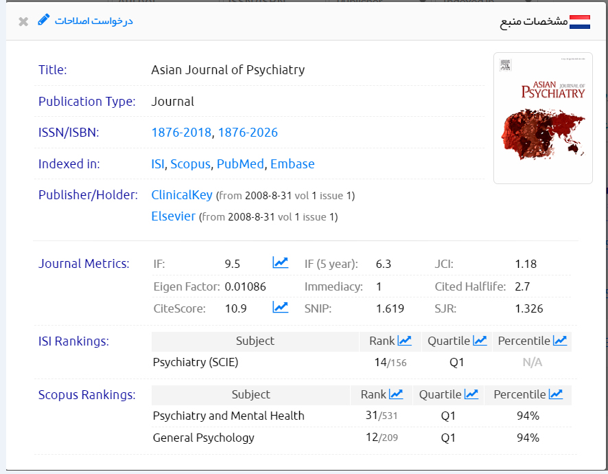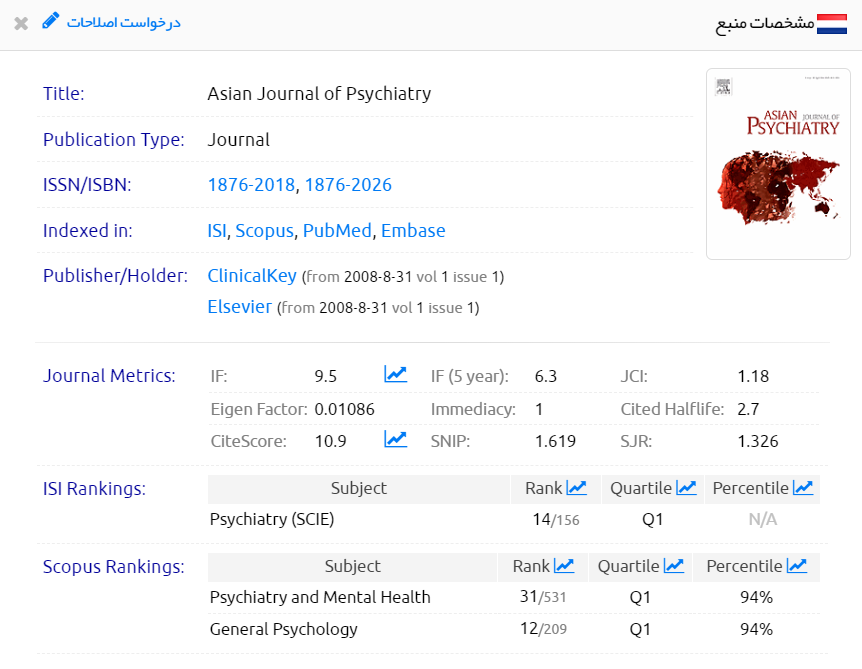| 14 | Predictors and incidence rate of suicide re-attempt among suicide attempters: A prospective study | Original | ISI, Scopus, PubMed | 28-March-22 | Image | - |