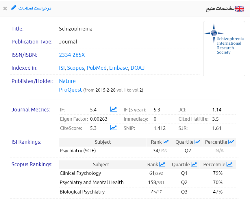 | 2 | ARAS recent onset acute phase psychosis survey, a prospective observational cohort of first episode psychosis in Iran—the cohort profile | Original | ISI, PubMed , ScopuS | 19-Nov-22 | Image | |