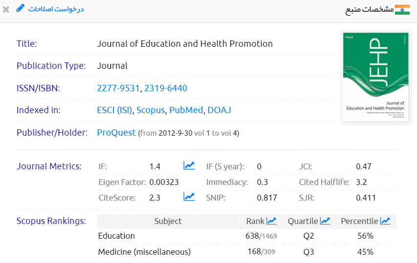 | 3 | Psychological adverse effects of COVID-19 pandemic on health service providers: an online survey | Original | ISI, PubMed , ScopuS | 26-Oct-22 | Image | |