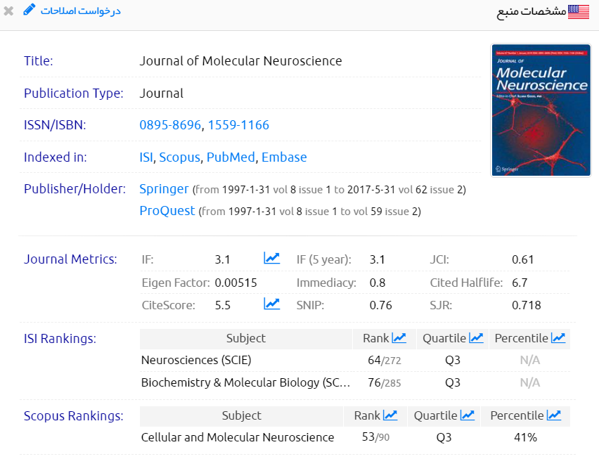 | 6 | Expression Analysis of Ermin and Listerin E3 Ubiquitin Protein Ligase 1 Genes in the Periphery of Patients with Schizophrenia | Original | ISI, Scopus, PubMed | 21-Oct-22 | Image | |