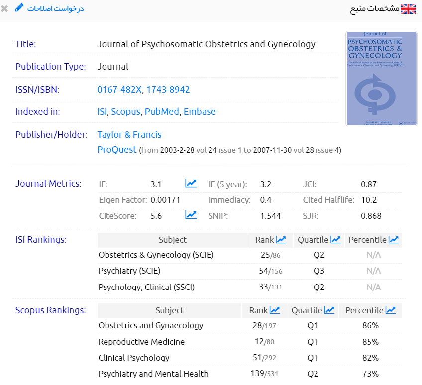 | 5 | Individual counseling in mothers bereaved by pregnancy loss: A randomizedclinical trial | Original | SI, PubMed , ScopuS | 30-Jun-22 | Image | |