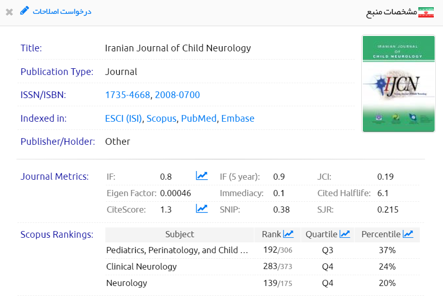 | 8 | Assessment of Neuropsychiatric Indicators in Children and Adolescents With Primary Brain Tumors and Other Brain Space-Occupying Lesions Before and After Surgery | Original | ISI, Scopus, PubMed | 16-Jul-22 | Image | |