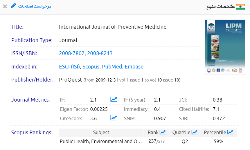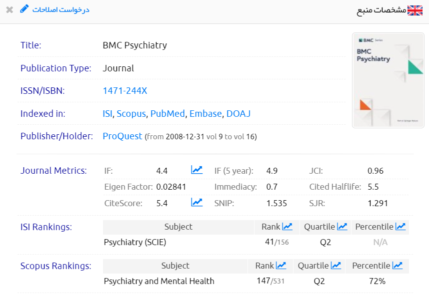 | 9 | Early marriage, stressful life events and risk of suicide and suicide attempt: a case–control study in Iran | Original | ISI, Scopus, PubMed | 28-Jan-22 | Image | |