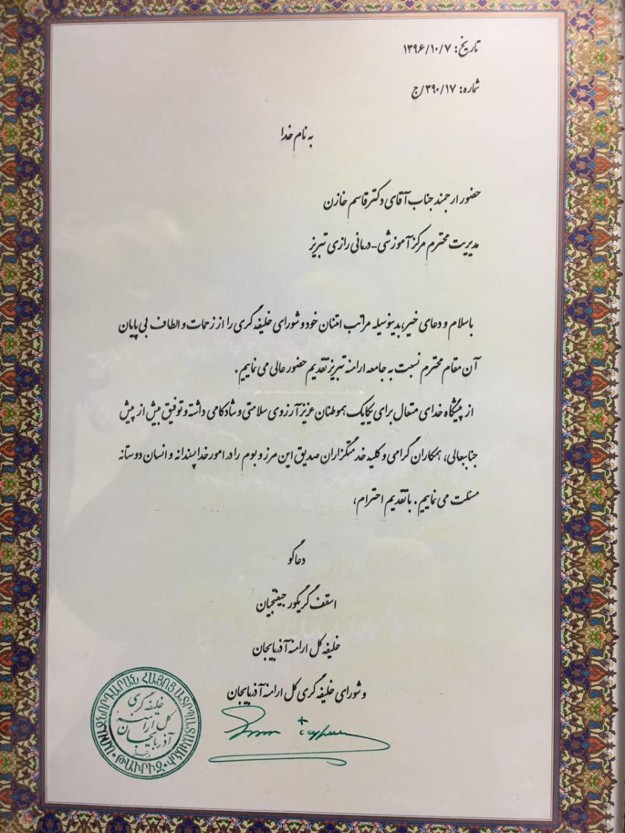 تاریخ انتشار : چهارشنبه ۱۳ دی ۱۳۹۶ تعداد بازدید کنندگان خبر : 6 زمان مطالعه : 1 دقیقه دیدار خلیفه گری ارامنه گالری تصویر کانورت شده کد خبر : 77814 کپی تصاویر ارسال نظر ثبت